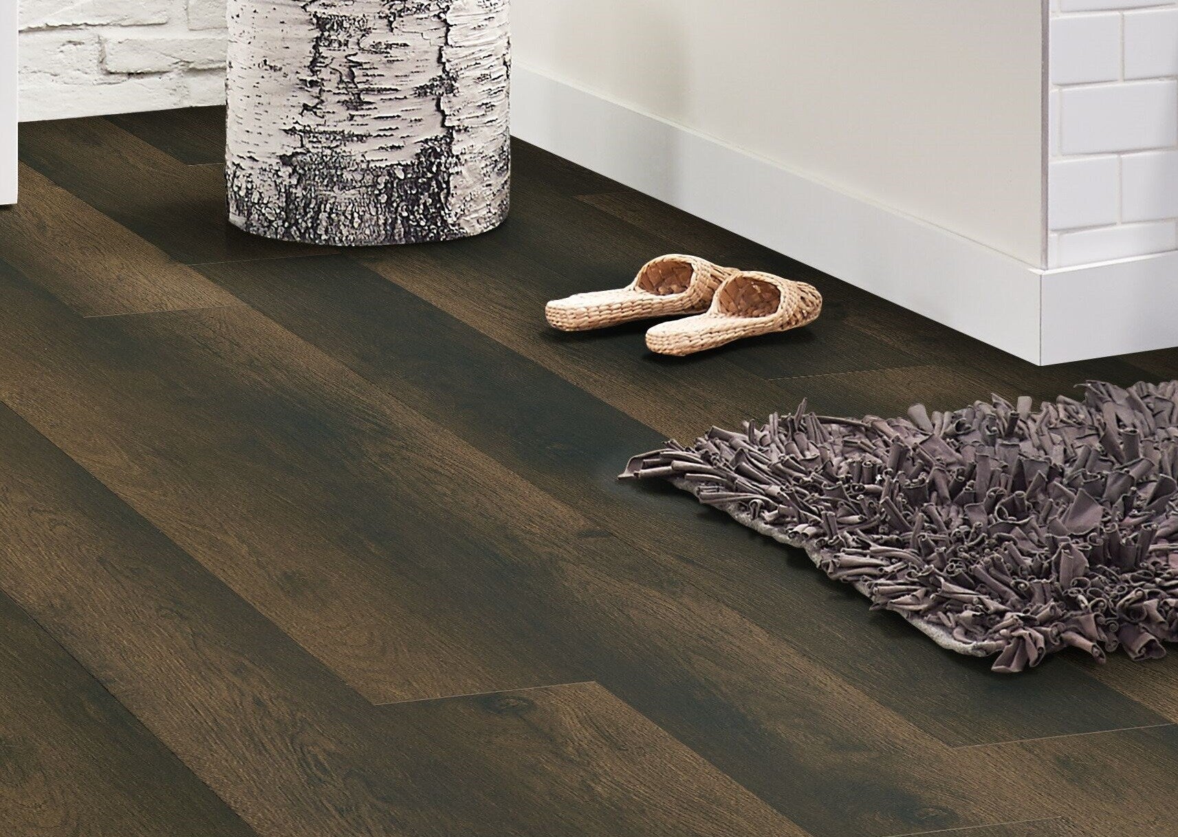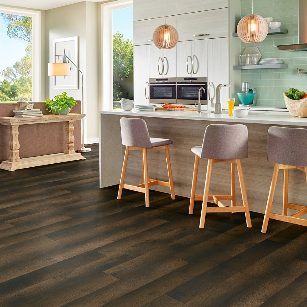 Assurity by Armstrong Flooring delivers a durable, waterproof rigid core luxury vinyl plank with the rich look of dark oak. A 20‑mil urethane wear layer resists scratches and dents, while the click‑lock design and pre‑attached pad make DIY installation quick and comfortable.