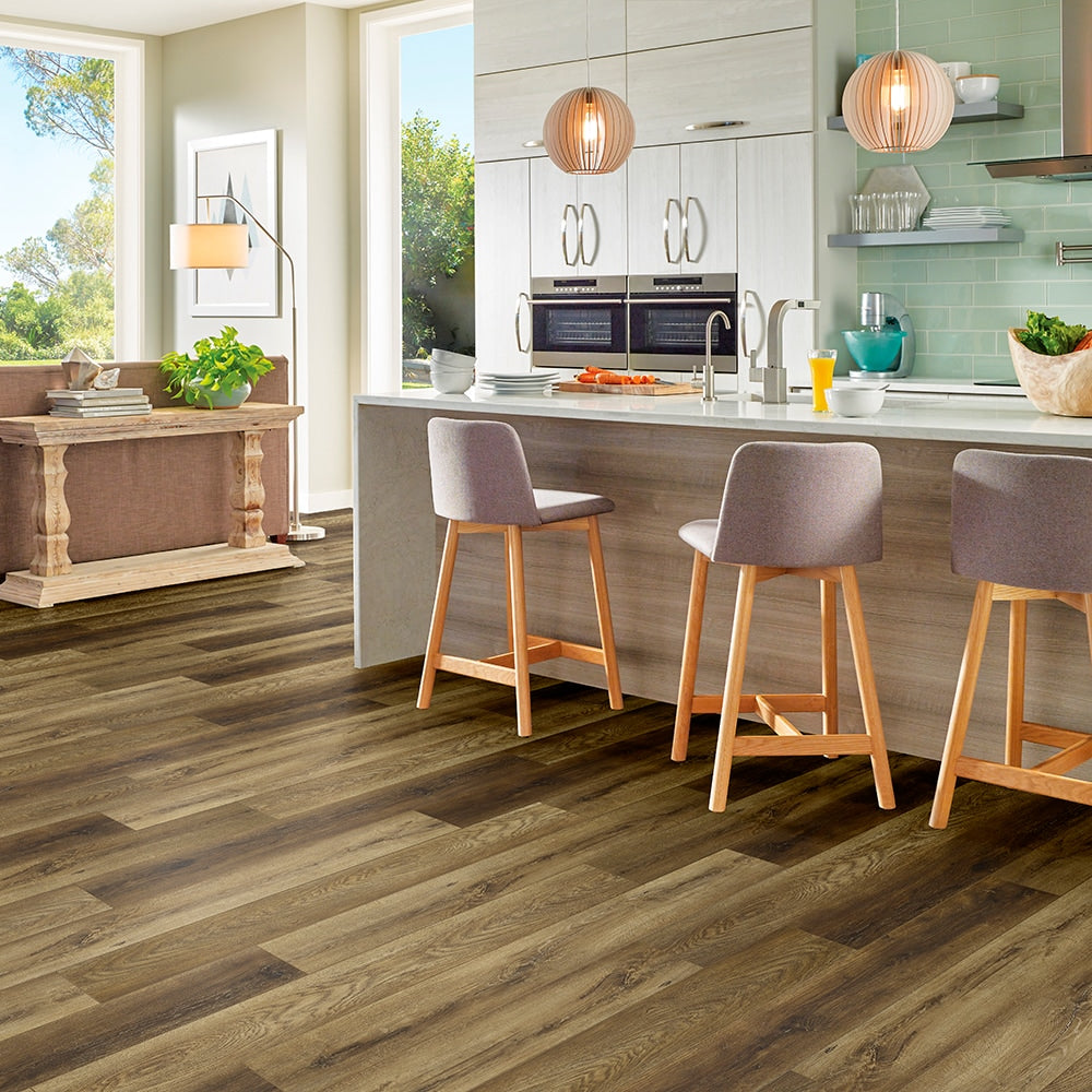 Assurity Mist Brown washes a room in rich, sun-baked wood tones that feel both grounded and modern. The low-gloss finish and nuanced grain bring organic texture that pairs beautifully with matte black hardware or soft linen upholstery. Float it through open living spaces for seamless continuity, styling with woven baskets and leafy greenery to heighten the natural vibe. A luxurious foundation that’s as practical as it is polished.