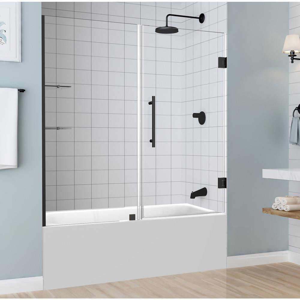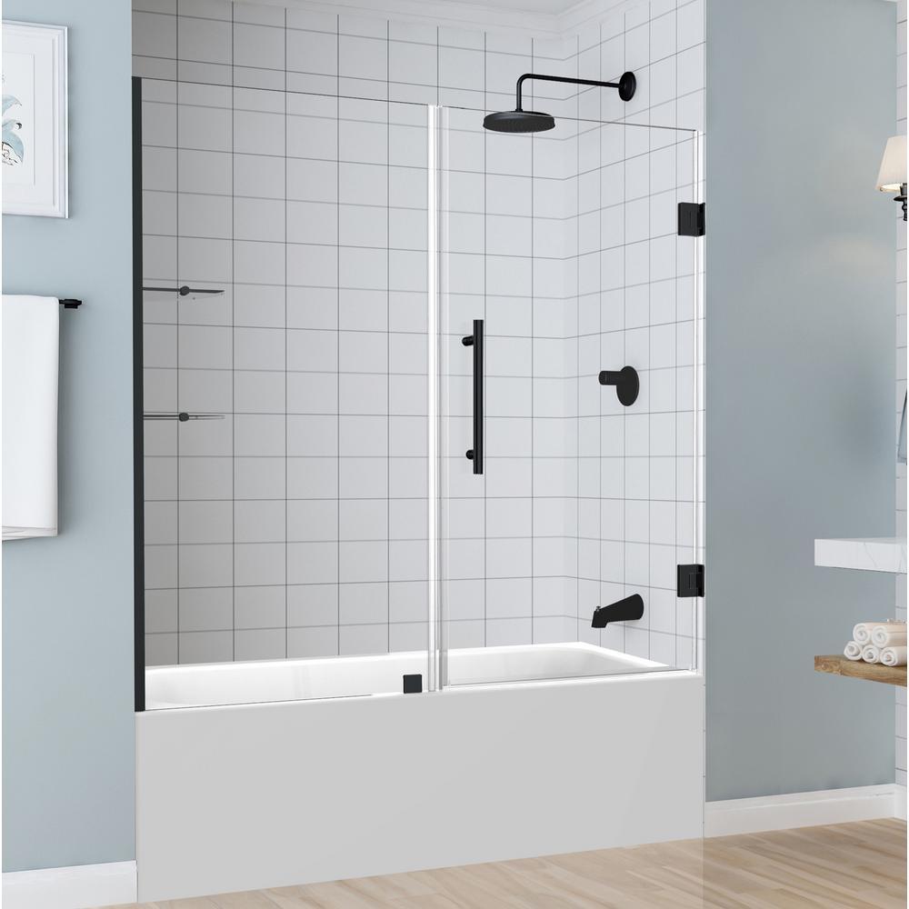 Belmore GS 59.25 in. to 60.25 in. x 60 in. Frameless Hinged Tub Door with Glass Shelves in Matte Black