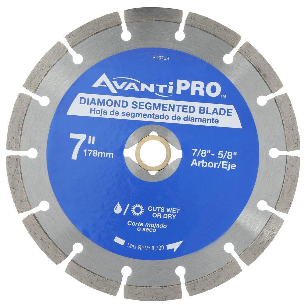 The AvantiPRO 7 in. Segmented Diamond Blade provides the best cutting performance and long life for all of your DIY projects. Use the segmented rim blade for fast and aggressive cuts on concrete, brick, block, stone, and stucco. This blade will fit most 7 in. angle grinders and circular saws.