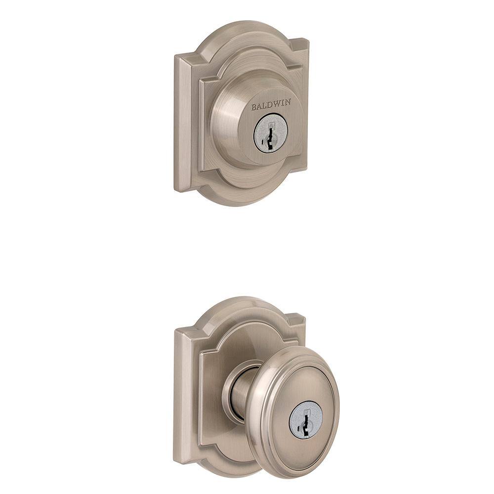 Baldwin Prestige Carnaby Satin Nickel Exterior Entry Knob & Single Cylinder Deadbolt Combo Pack with SmartKey Security