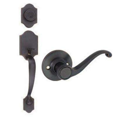 Baldwin Prestige Wesley Single Cylinder Polished Brass Exterior Door Handleset and Alcott Entry Knob Featuring SmartKey Security