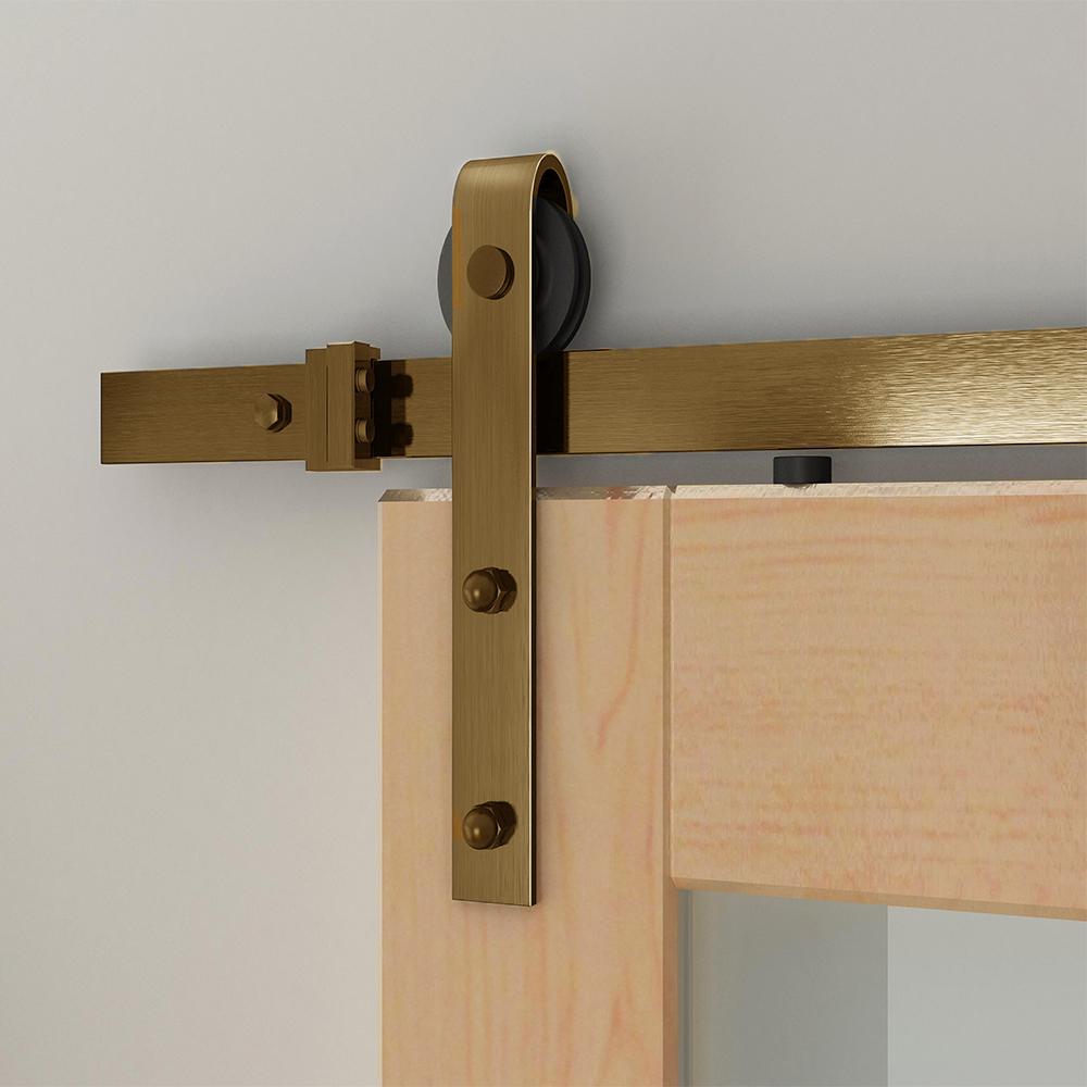 Soft Closed Satin Brass PVD Rolling Barn Door Hardware Kit with 2-3/4 in. Wheel