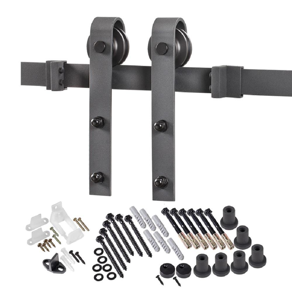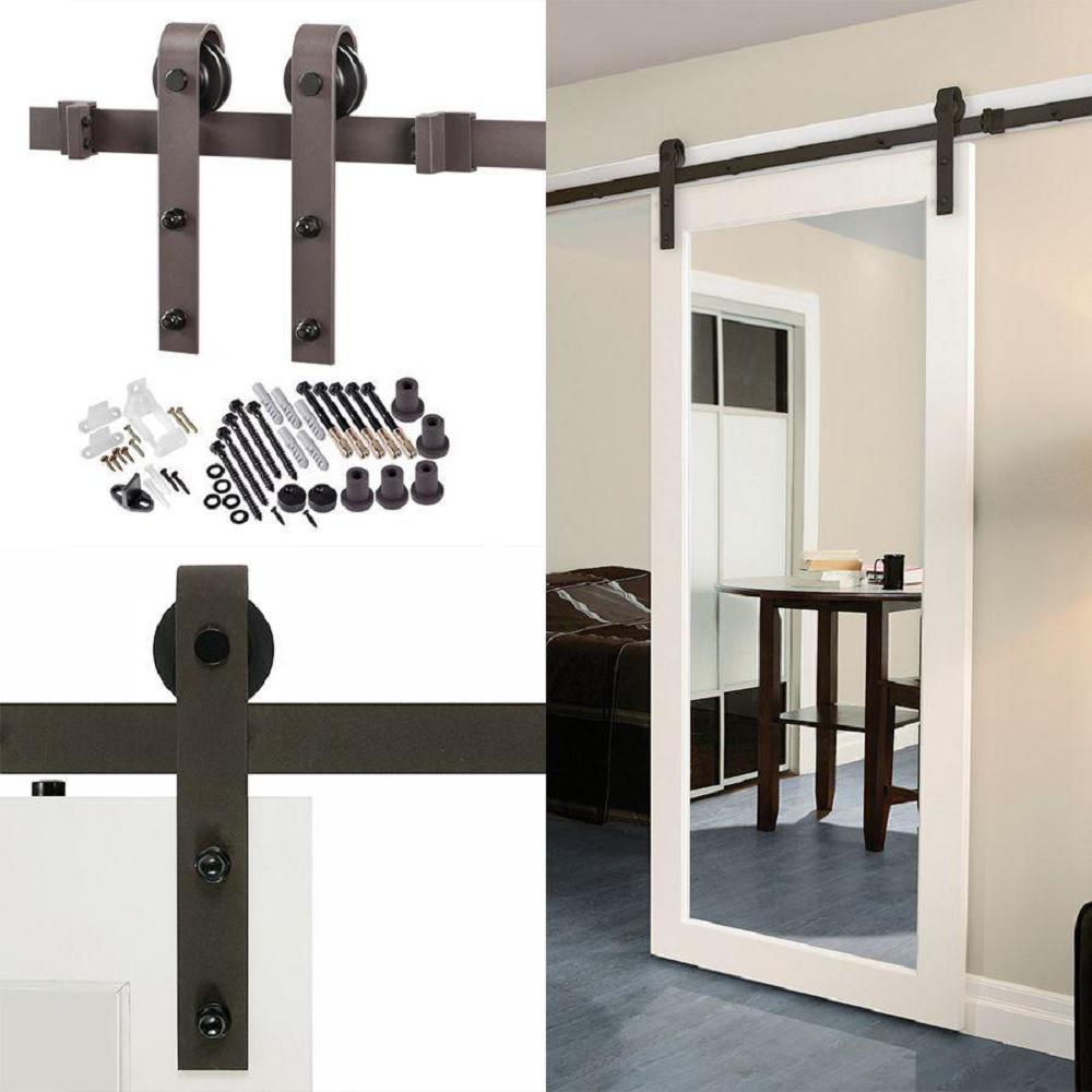 8 ft. Premium Bronze Interior Modern Country Rustic Wood Barn Door Closet Hardware Track Kit