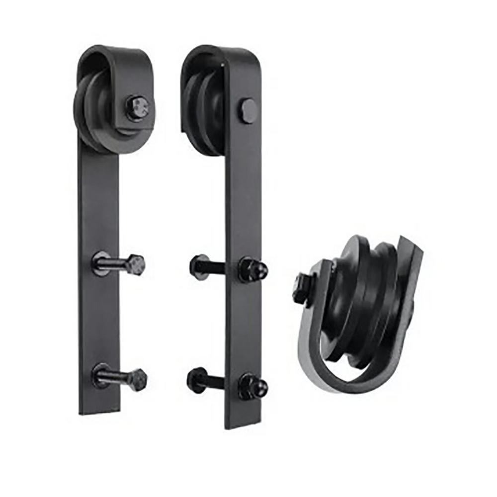 79 in. x 2.5 in. Black Metal Barn Door Sliding Door Hardware Kit