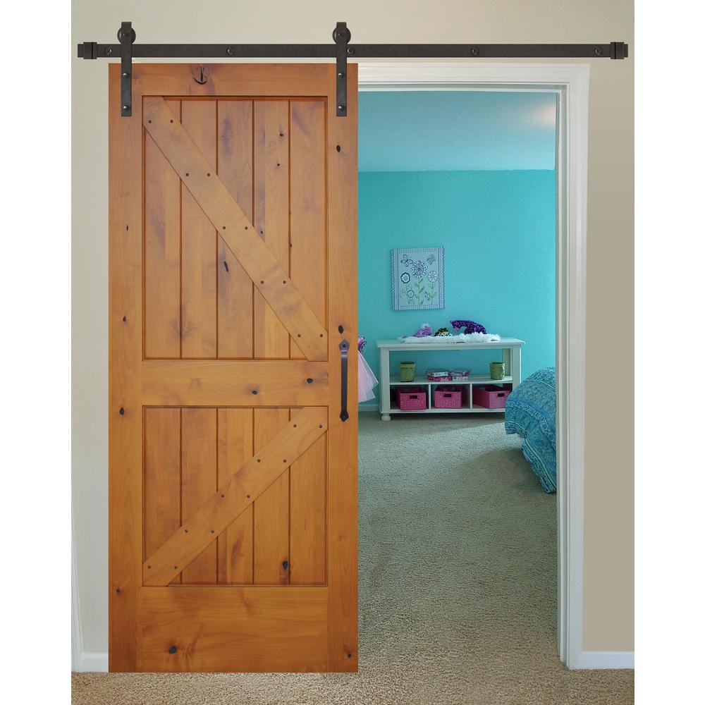 Pacific Entries' sleek and decorative Oil Rubbed Bronze Sliding Barn Door Hardware Kit with powder coat finish adds a rustic charm to any ordinary door. The high quality steel sliders allow you to incorporate the beauty of barn door style doors in your home. High density polyurethane wheels and anti-jump disks provide a smooth, quiet operation and a high quality feel. This kit is ideal for closets, interior doors, and room dividers. The set includes all mounting hardware and hanging components needed for 1-door.
