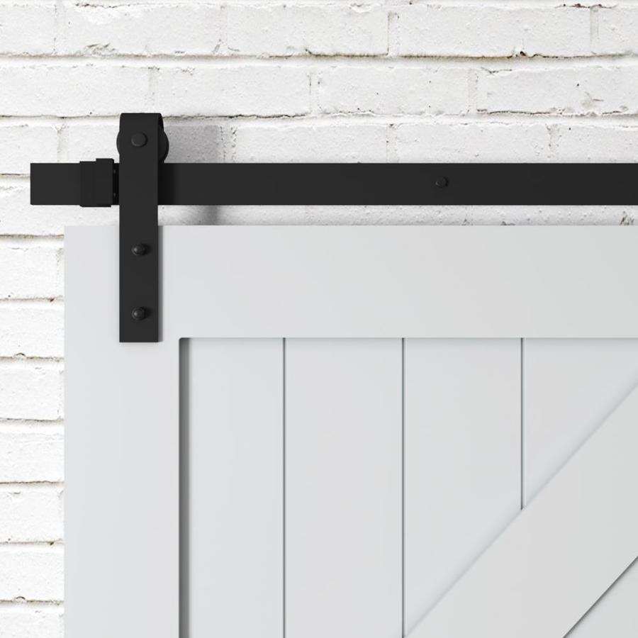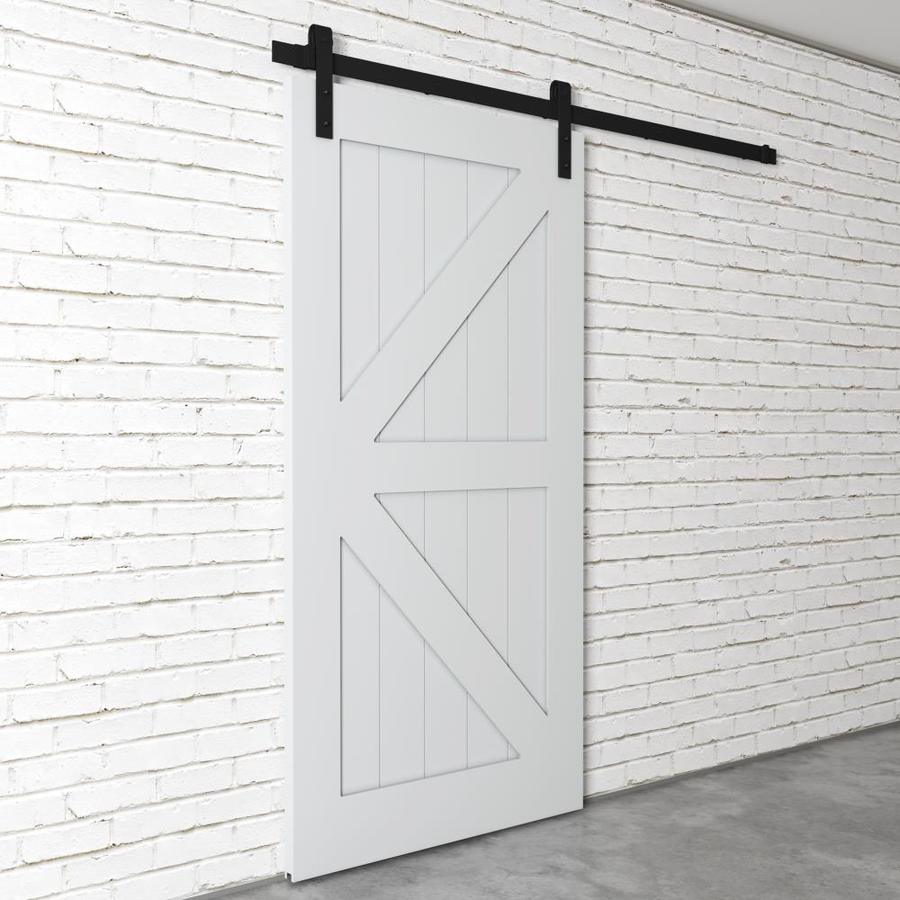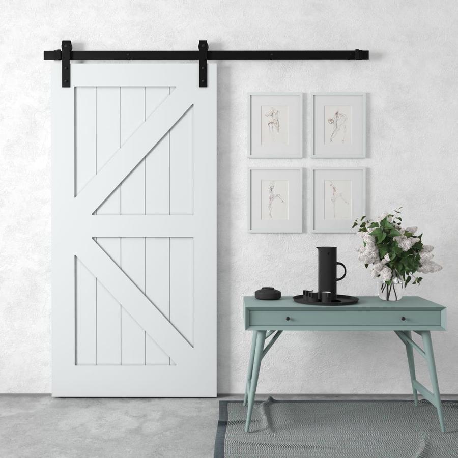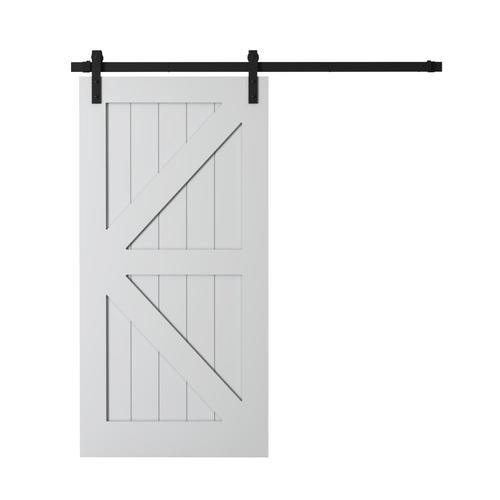 Constructed of premium MDF with solid wood panels and British brace overlay on both sides Barn door track and hardware kit included - assembly required Great for areas where narrow hallways restrict swing door movement Install two doors to cover larger openings up to 79-in with a modern classic double door look
