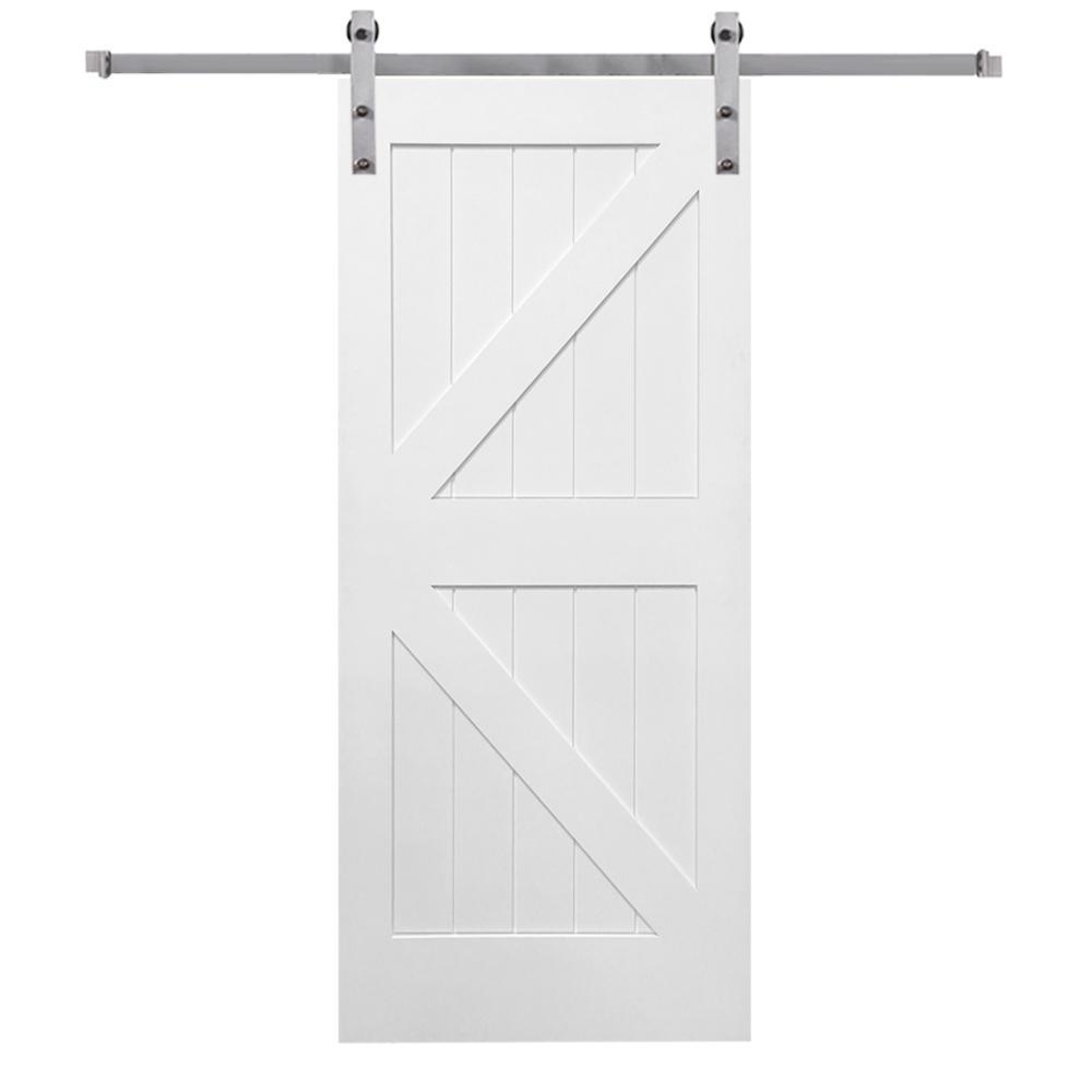 36 in. x 84 in. Primed Composite K-Plank Barn Door with Matte Black Hardware Kit