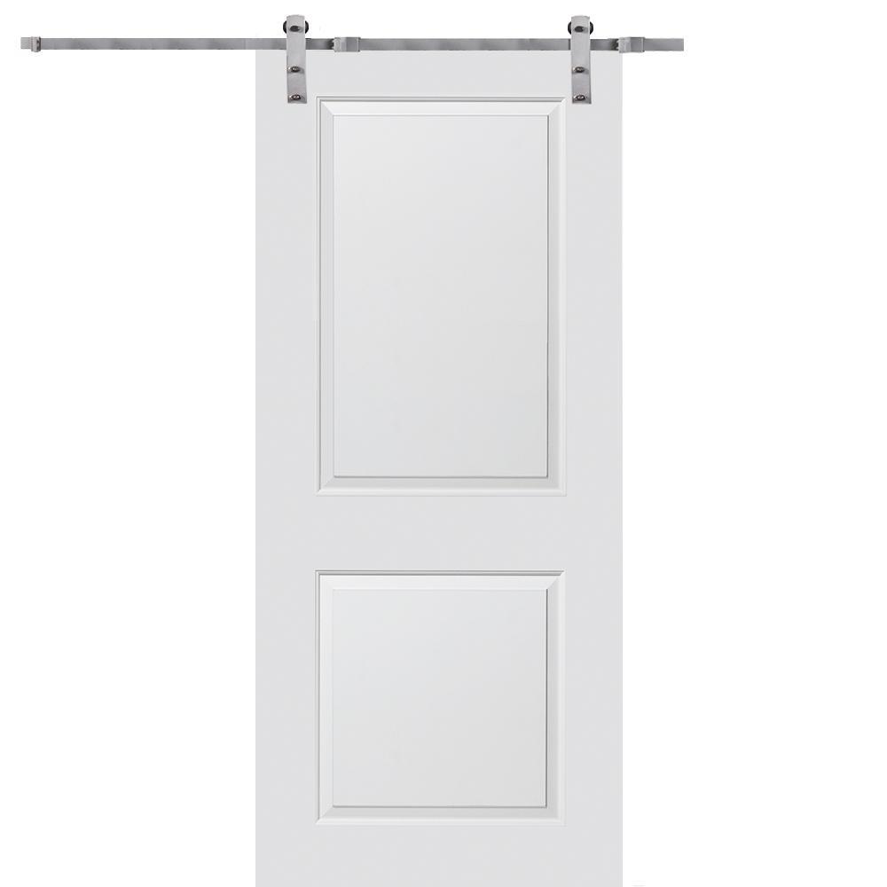 32 in. x 84 in. Smooth Carrara Primed Molded MDF Sliding Barn Door with Black Hardware Kit