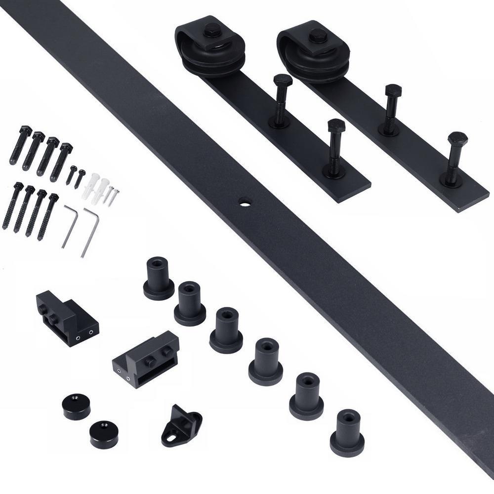 • Package includes 1 set of door planks (assembly required) 1 set of sliding door hardware kit, all bolts come in matching finish color; door hardware weight capacity: 150 lbs., track length: 6 ft. (72 in.), hardware color finish: matte black