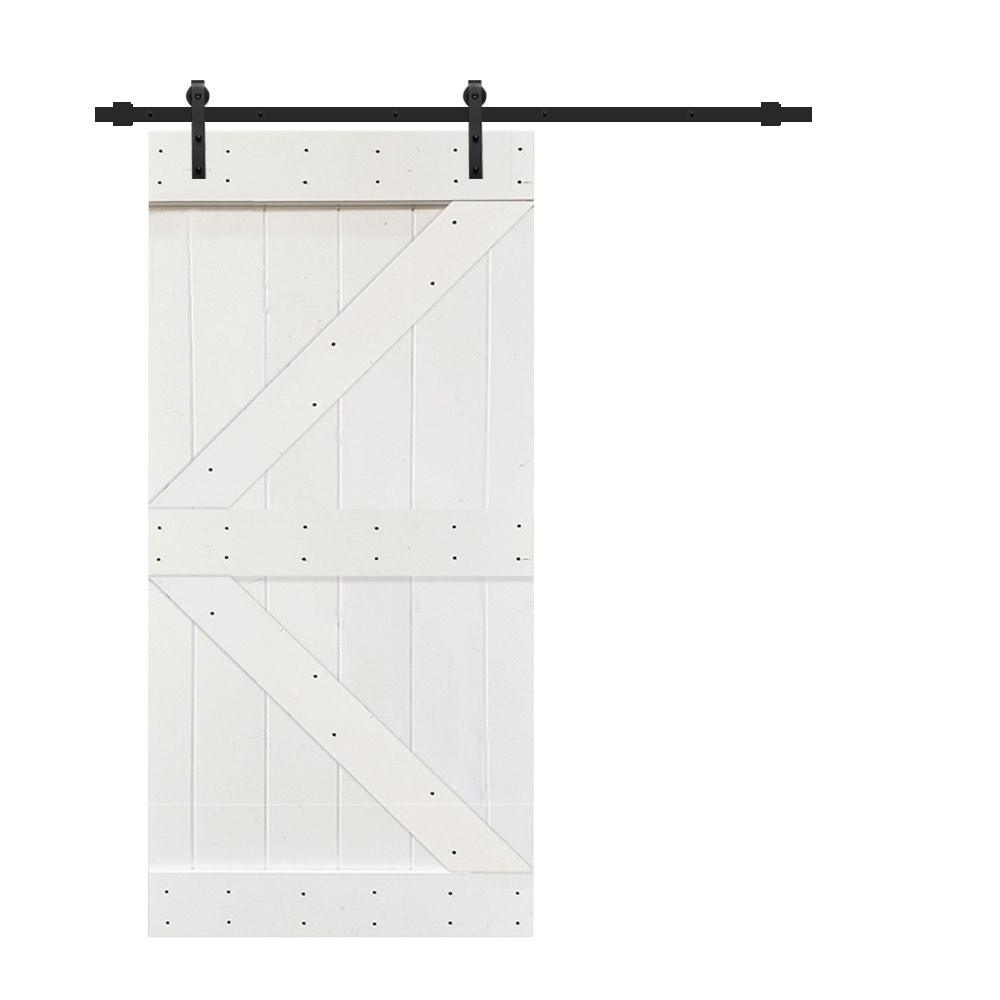K Series 30 in. x 84 in. Gray Knotty Pine Wood Interior Sliding Barn Door with Hardware Kit