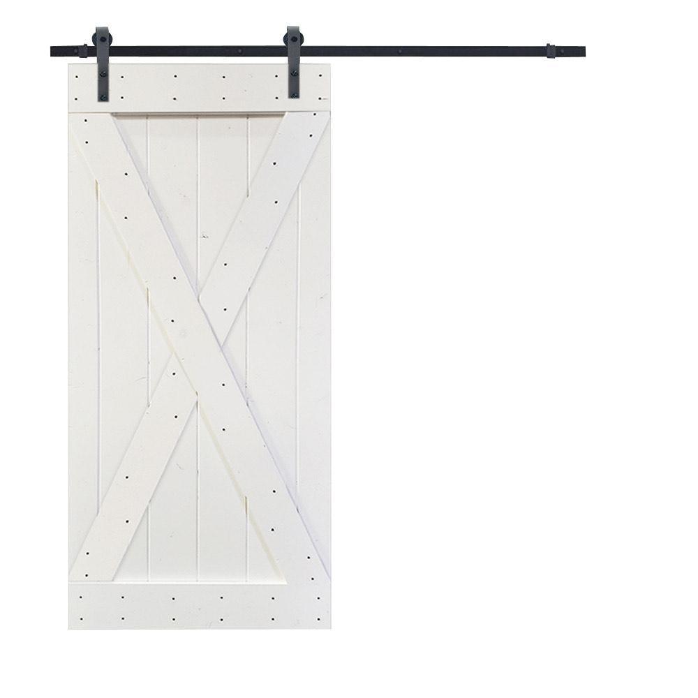 • Package includes 1 set of door planks (assembly required) 1 set of sliding door hardware kit, all bolts come in matching finish color; door hardware weight capacity: 150 lbs., track length: 6 ft. (72 in.), hardware color finish: matte black