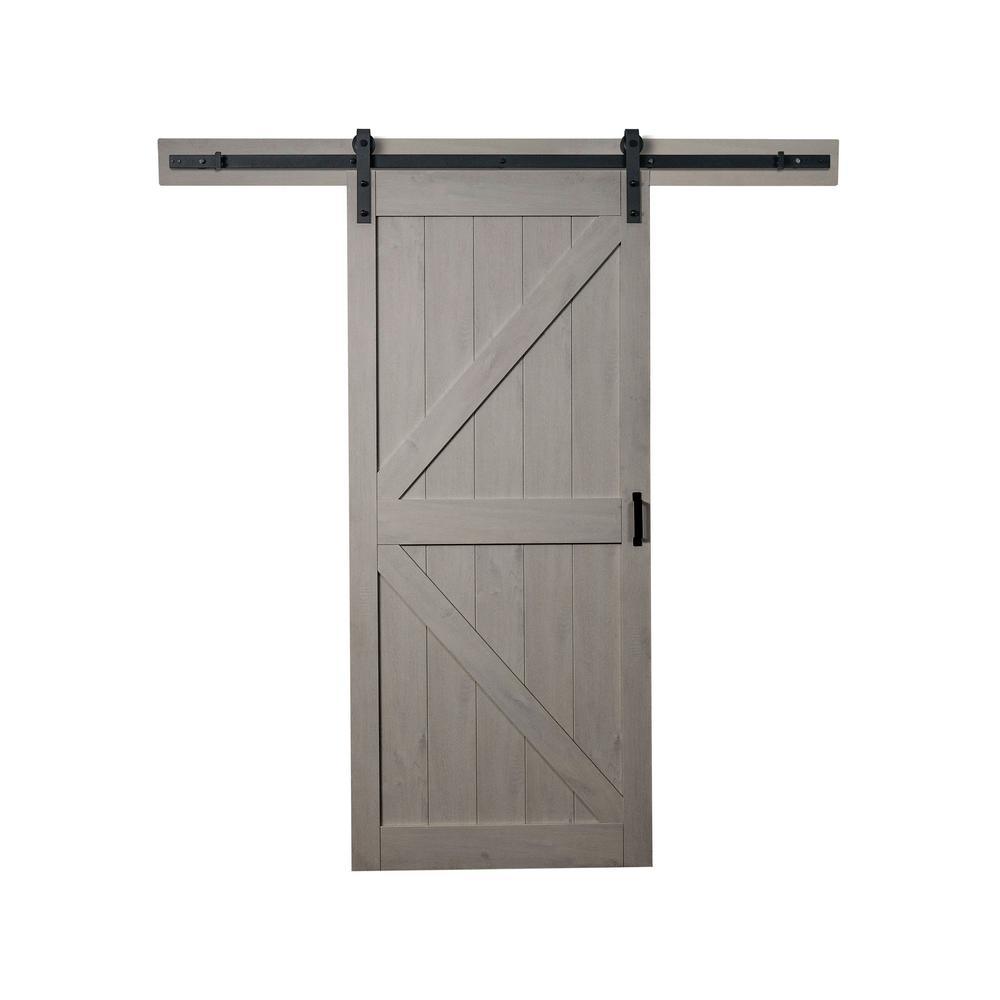 K Design 36 in. x 84 in. Ashen White Finished MDF Sliding Barn Door with Bent Strap Hardware Kit