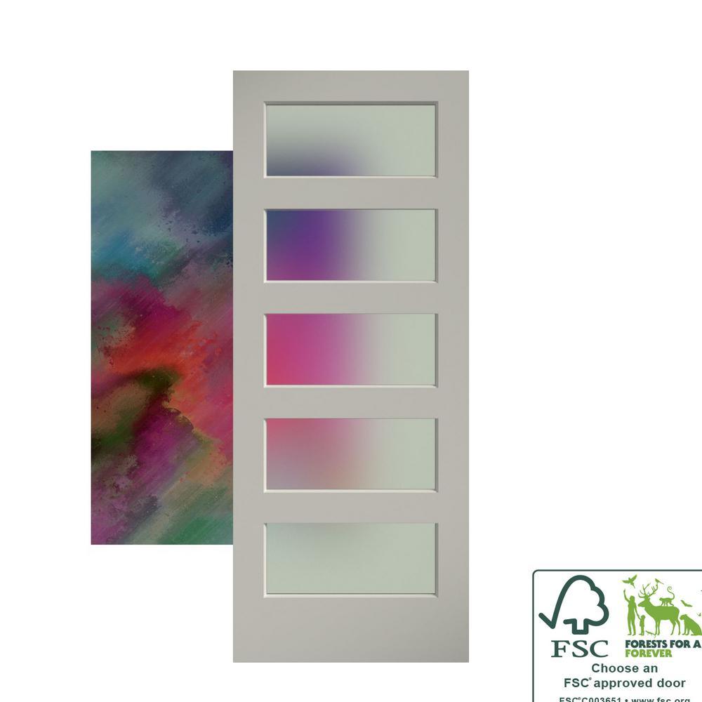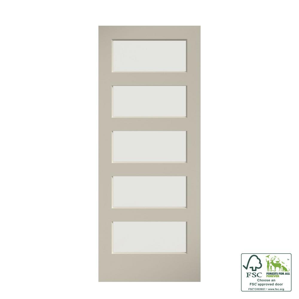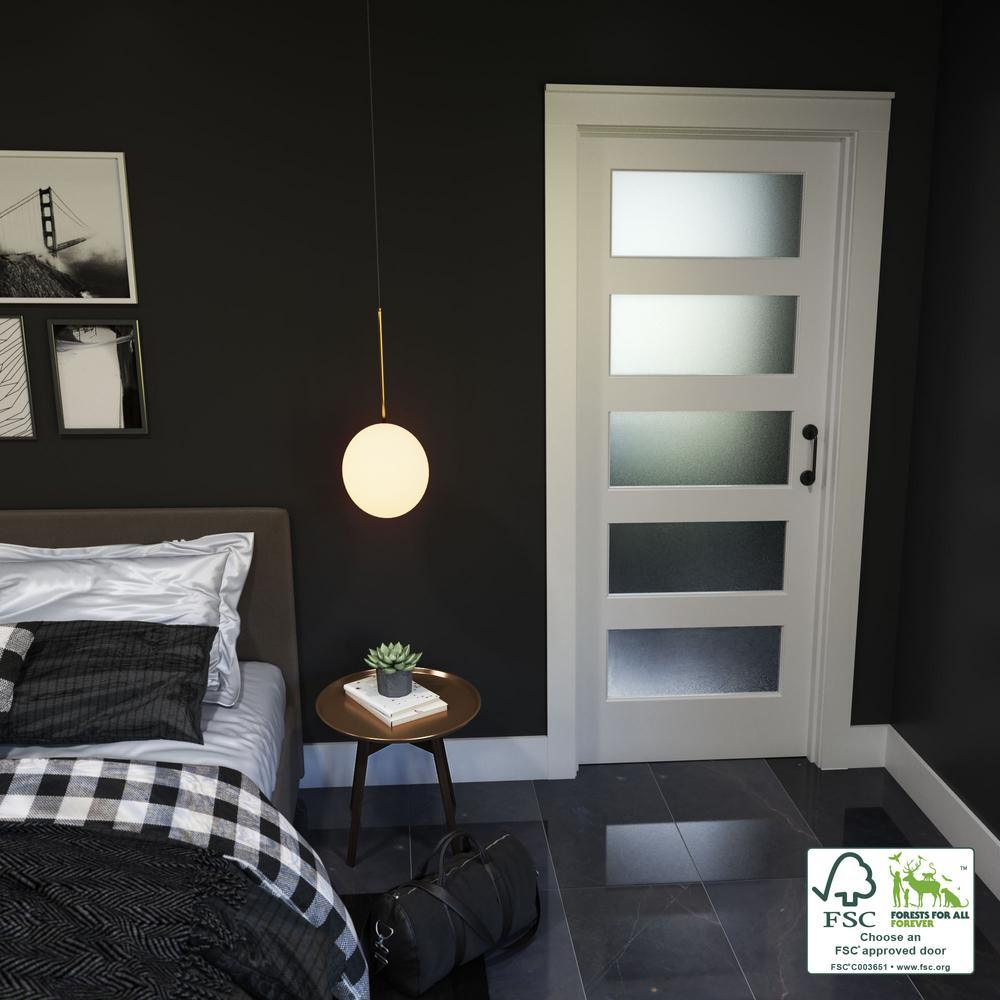 36 in. x 84 in. 5 Frosted Glass Solid Core White Finished Interior Barn Door Slab