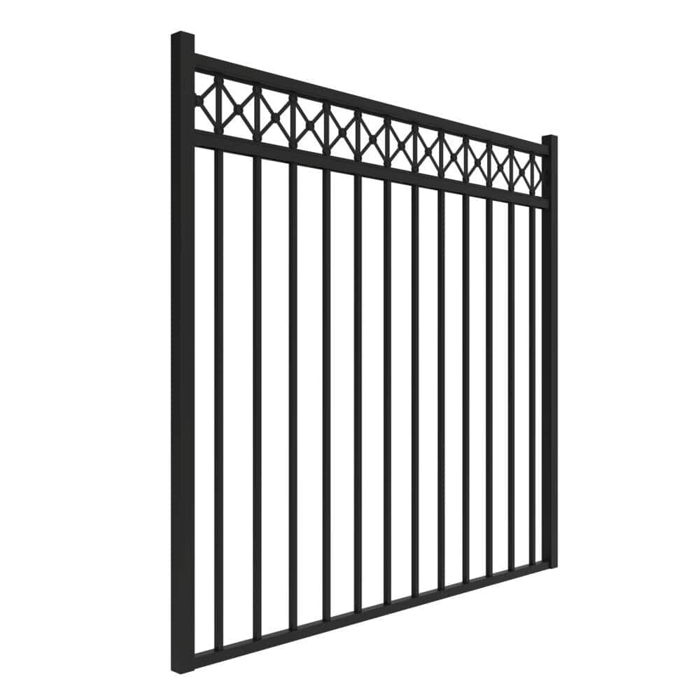 Barrette Outdoor Living Highland 4.5 ft. x 5 ft. Black Decorative Flat Top Straight Metal Fence Gate
