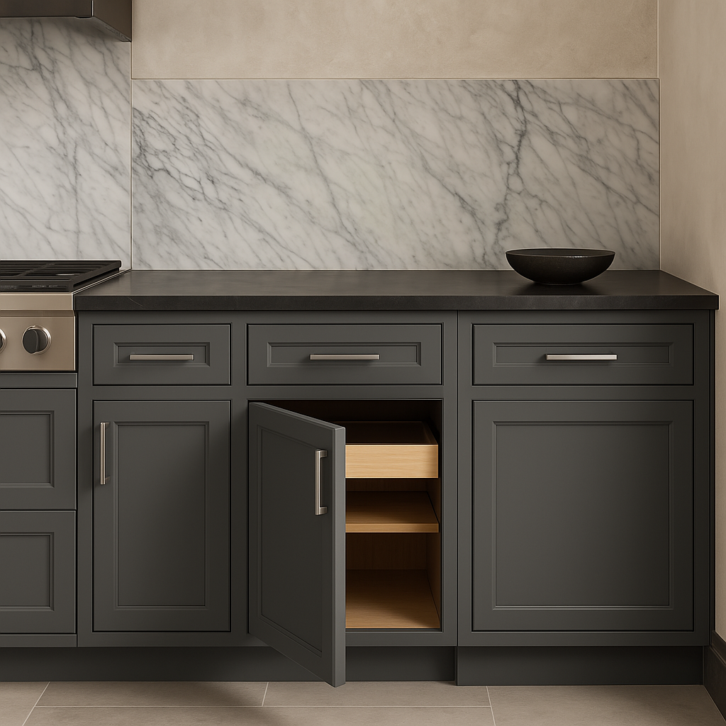 - Modern Shaker Design: Sleek charcoal finish with beveled transitions for a custom look.