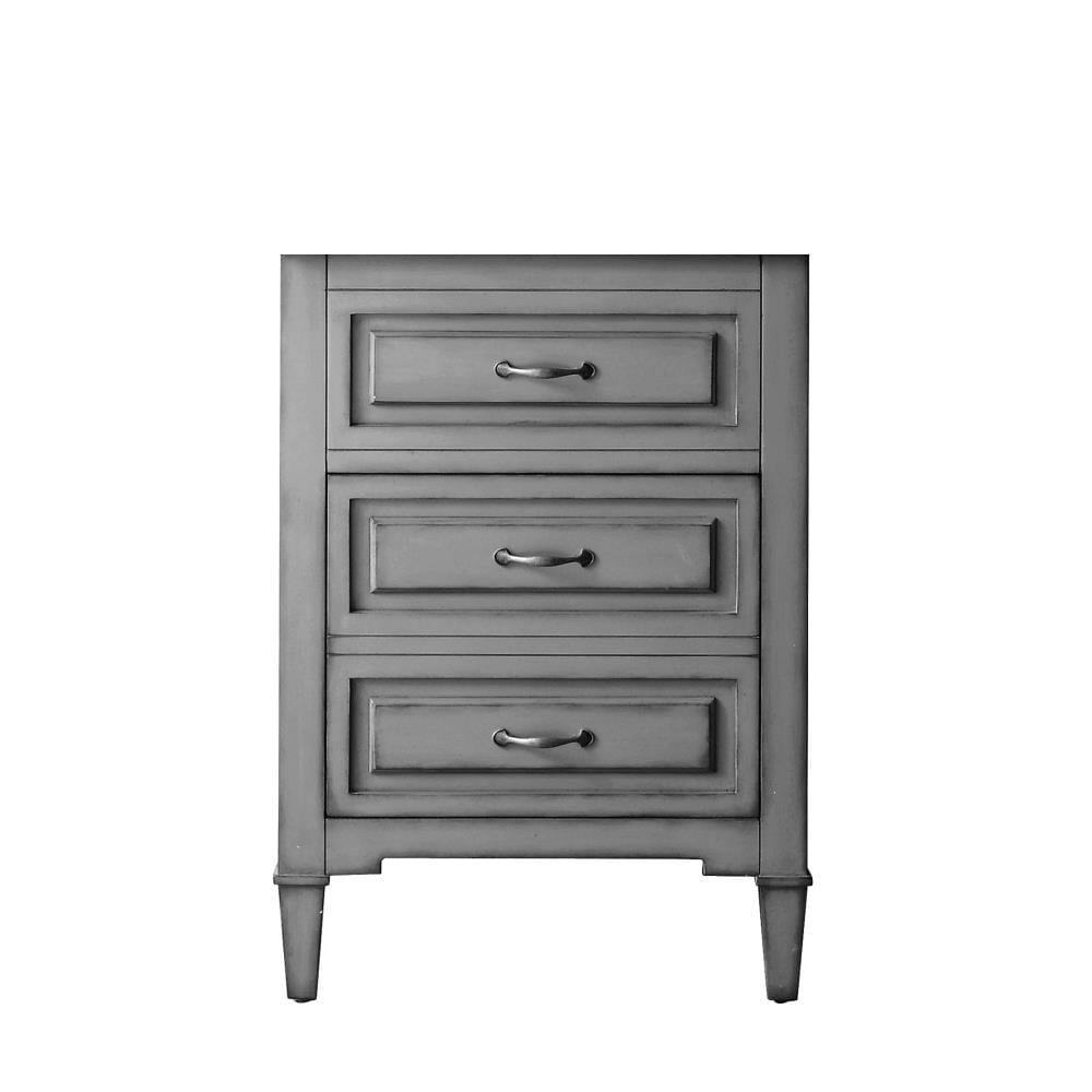 Stylish and sturdy, the Avanity Kelly 24-inch vanity base features a solid poplar wood frame with MDF panels in a painted grayish blue finish. Two soft-close drawers and antique nickel hardware deliver modern convenience and timeless character. Vanity top, sink, and faucet are sold separately.