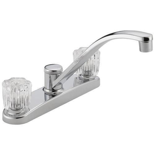 Peerless Chrome 2-Handle Deck-Mount Low-Arc Handle Kitchen Faucet (Deck Plate Included)