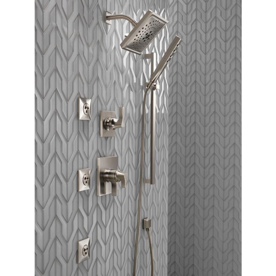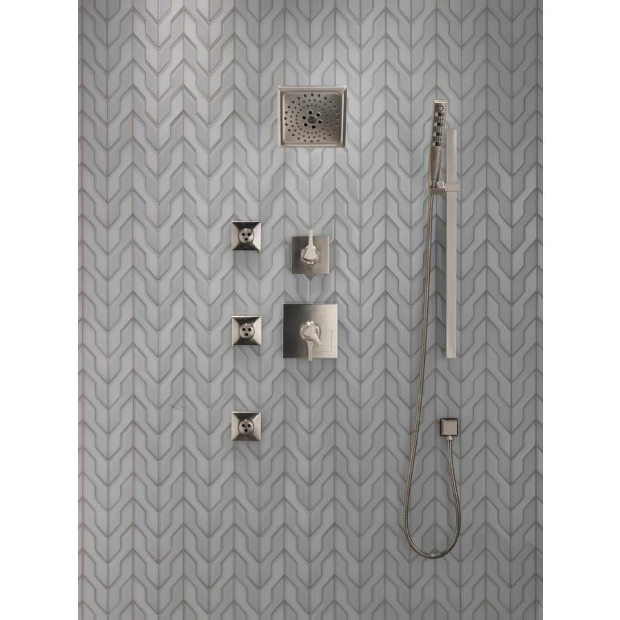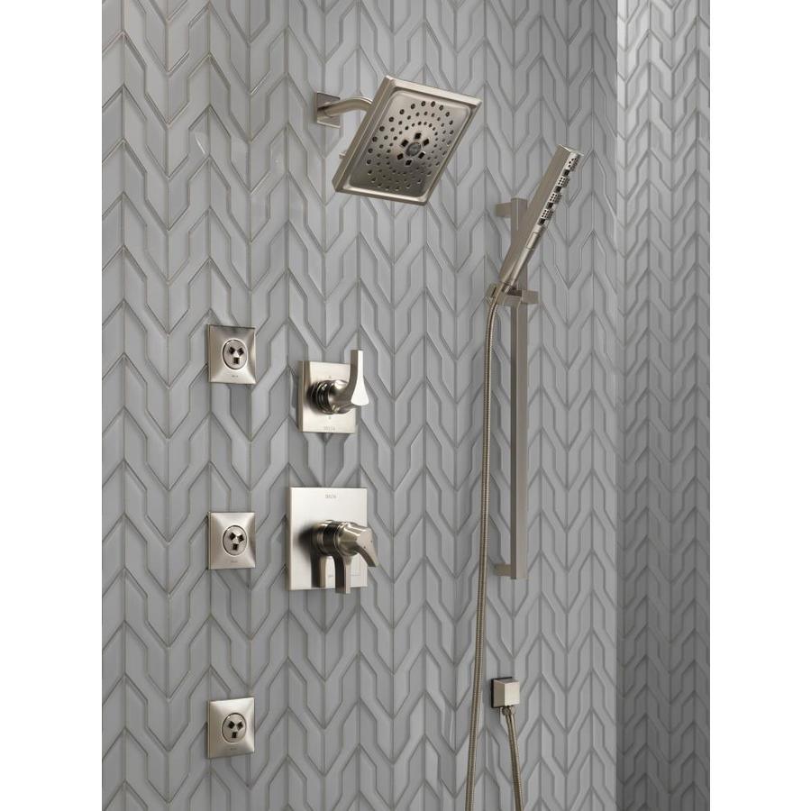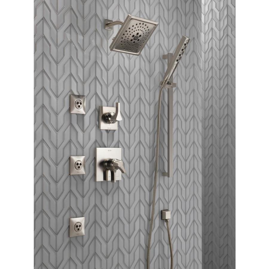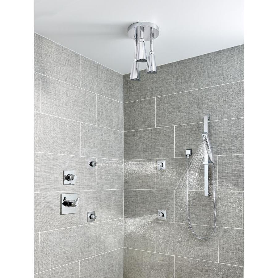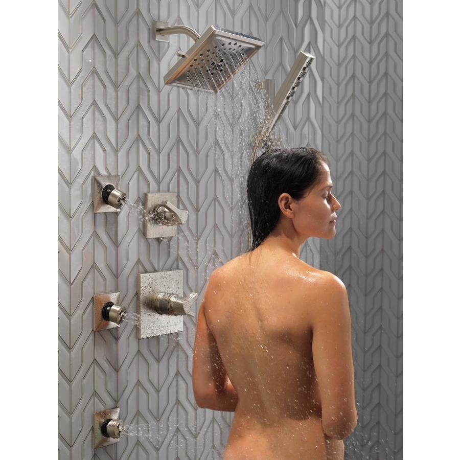 H2Okinetic Technology sculpts the water into a unique wave pattern, giving the feeling of more water without using more water Pause feature reduces the water to a trickle, allowing you to conserve water while doing tasks such as lathering up or shaving your legs Soft, rubber spray holes allow you to easily wipe away calcium and lime build-up from the spray face of your shower head and hand shower with the touch of a finger 2.00 gpm at 80 psi, 7.6 L/min at 550 kPa maximum water usage Pause feature reduces water to a trickle, giving you space for shaving, lathering and other shower tasks while maintaining your temperature settings Includes 82-in hose 2.00 gpm at 80 psi, 7.6 L/min at 550 kPa Watersense® labeled showers use at least 20% less water than the industry standard—saving you money without compromising performance