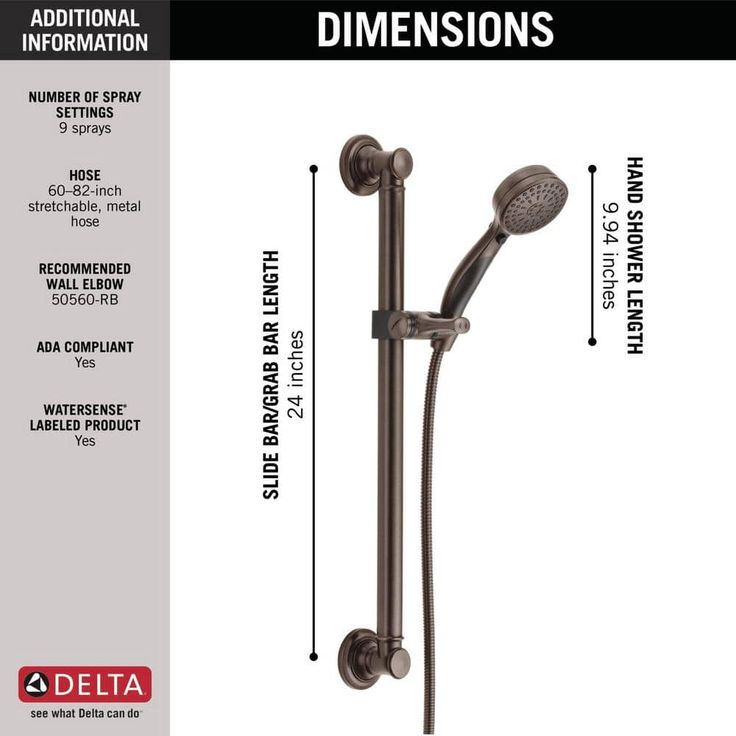 Supports up to 500 pounds of force Mounting on wood blocking behind all wall surfaces is preferable Non-rotating bars help to increase stability Retrievable wall anchor included for easy removal Grab/slide bar diameter is 1-1/4-in Offered in a variety of finishes and lengths WaterSense certification promotes water conservation Pause feature reduces the water to a trickle, allowing you to conserve water while doing tasks such as lathering up or shaving your legs ActivTouch offers numerous spray options and a non-slip grip handle