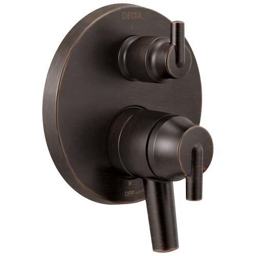 3-Setting diverter trim 2-handle trim with separate temperature dial Control volume and water temperature independently with two separate handles for more refined control of your shower experience Monitor pressure balance valve keeps water temperature within a safe +/-3degrees F (+/-1.6degrees C), helping to protect you from sudden changes in hot or cold water pressure Trim kit only, must order R22000 valve separately to complete the unit Meets standards set by Americans with Disabilities Act (ADA)
