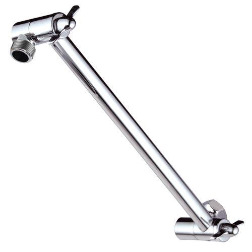 11 In. height and angle adjustable extension arm Fits any shower head or hand shower Solid brass extension shower arm Height and angle adjustable arm Easy to tighten solid brass joints Connects in minutes to any standard overhead shower arm, no tools required