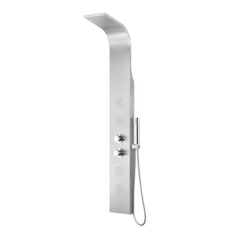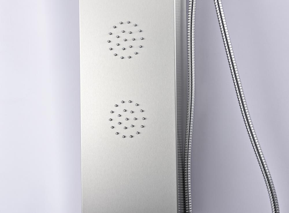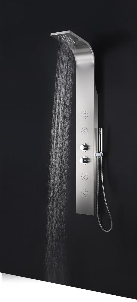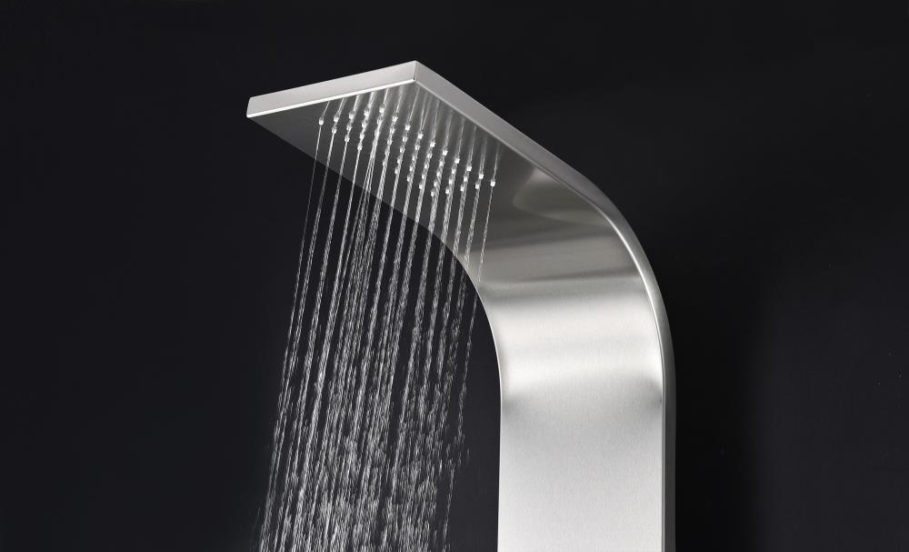 Prairie’s brushed stainless silhouette arcs like a quiet waterfall, turning the shower into a tailored sanctuary. The crisp, laser‑cut face and punctuated body jets create a refined rhythm of texture and sheen. Pair it with matte black tile or honed stone to let the metallic glow dance. This panel is a luxe essential—performance and poise in one striking statement.