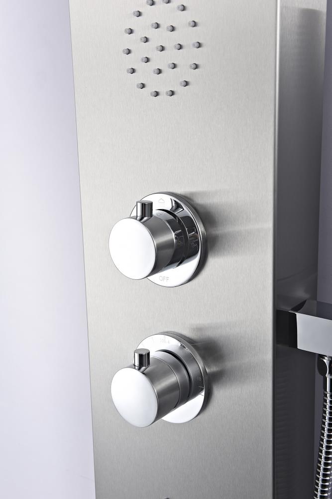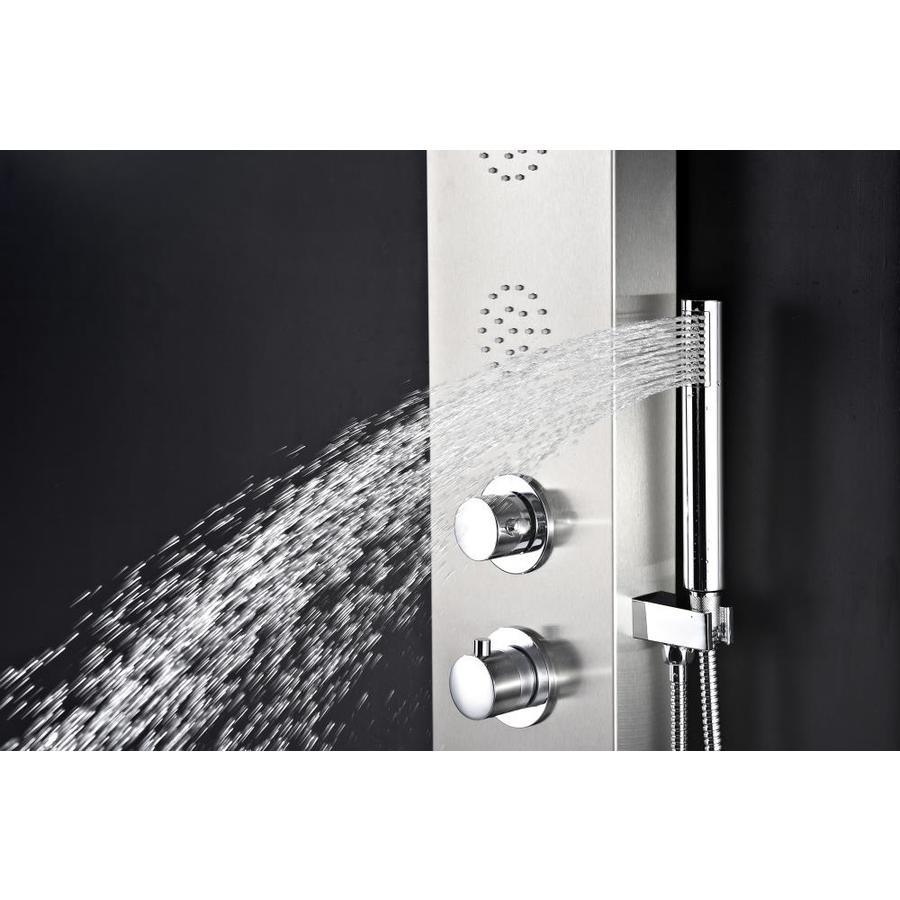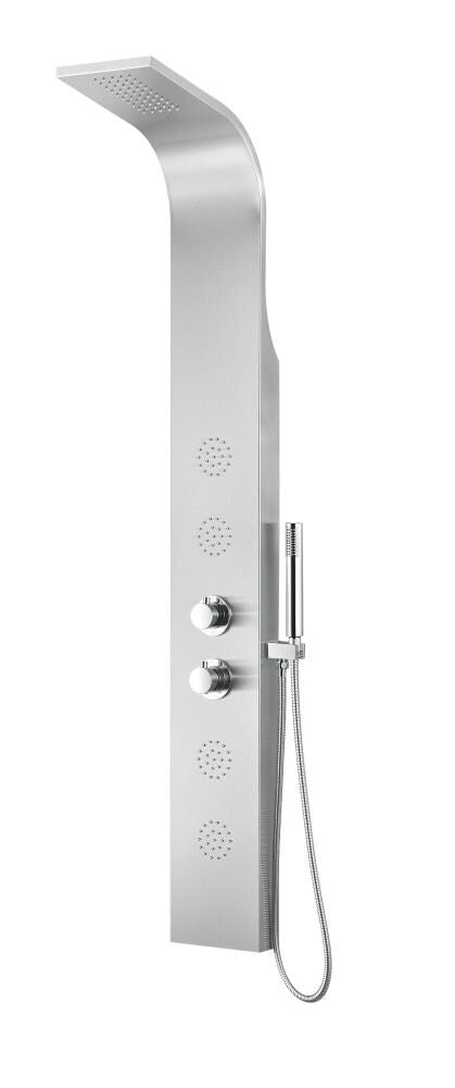 Elevate your bath with ANZZI’s Prairie full-body shower panel, crafted from RHINO ALLOY certified 304 stainless steel. It features a Heavy Rain overhead shower, four Acu‑Stream body jets, and a euro‑grip handheld sprayer, all controlled by two chrome knobs with an integrated 3‑way diverter.
