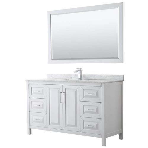 Wyndham Collection Daria 60-in White Single Sink Bathroom Vanity with White Carrara Marble Top, Mirror Included