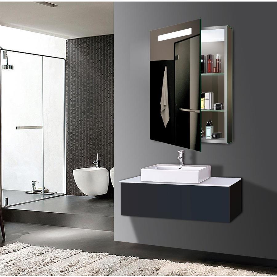 LED mirror medicine cabinet provides additional storage space Frameless style cabinet design offers a clean look, horizontal frosted LED light Aluminum frame with MDF back panel 6000K LED strip and rocker switch LED mirror only, all other items not included