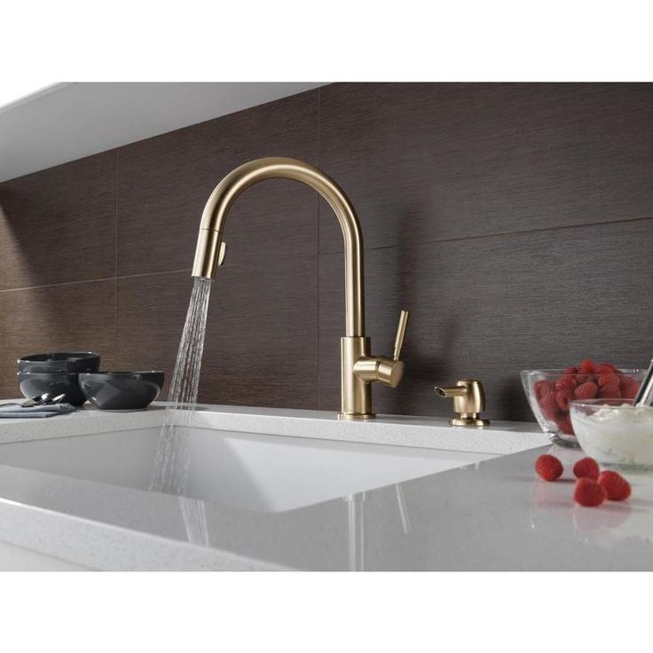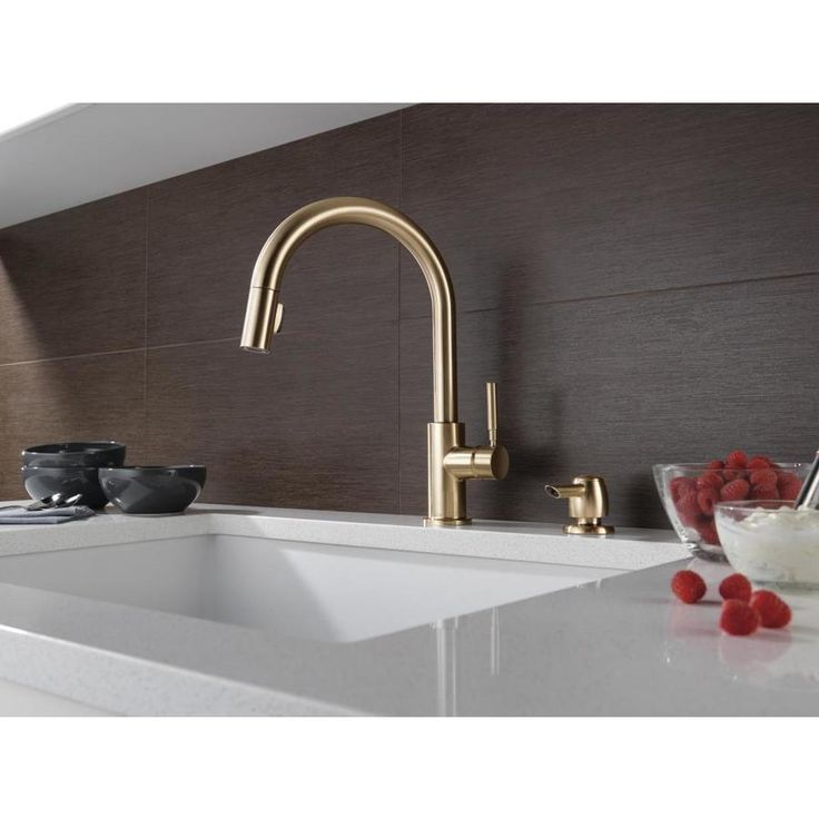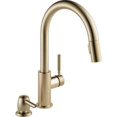 Delta Trask Champagne Bronze 1-Handle Deck-Mount Pull-Down Handle Kitchen Faucet (Deck Plate Included)