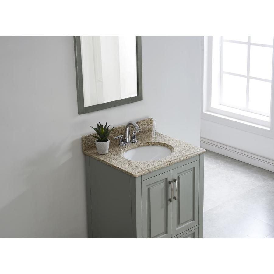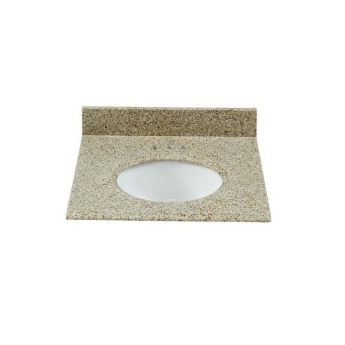Classic Desert Gold granite collection creates a natural color tone for bathroom dcor Attached stylish oval white vitreous china undermount bowl with safety overflow hole The ogee edge profile has a unique and transitional appearance Top pre-drilled for 4-inch centerset faucet for easy installation (faucet not included) 4-in high backsplash included to help protect walls from water damage Fits 24in W x 21in D vanity Side splash available, sold separately