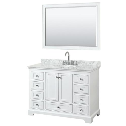 Wyndham Collection Deborah 48-in White Single Sink Bathroom Vanity with White Carrara Marble Top, Mirror Included