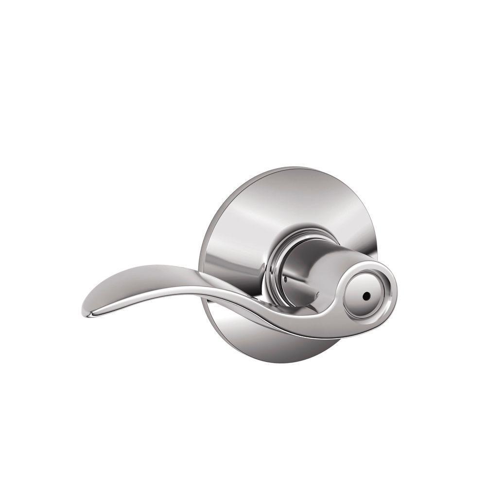 The reversible design of the Schlage Accent Satin Nickel Bed and Bath Lever allows it to be installed on a left-handed or right-handed door for ultimate versatility. Ideal for use on bathroom and bedroom doors where prohibited entry is sometimes desired, it's equipped with a push-button lock on the inside which can be disengaged from the outside with the included pin key. This privacy lever is widely popular for its elegant wave-like design that effortlessly matches a room's style without overshadowing it and looks especially exquisite when finished in Satin Nickel. Plus, it's designed and tested with strength and durability in mind, protected by a lifetime limited warranty for decades of dependable use.