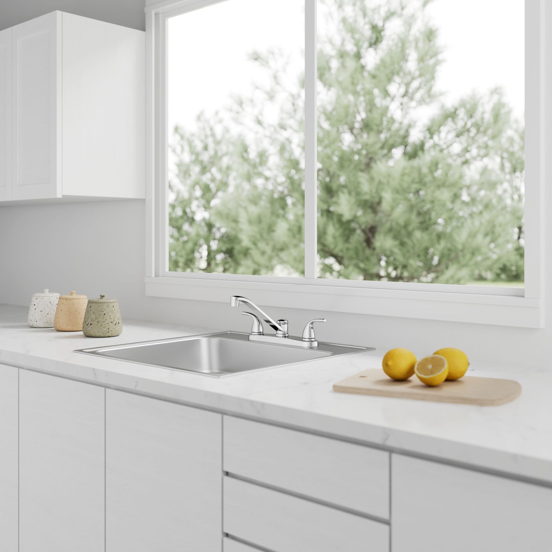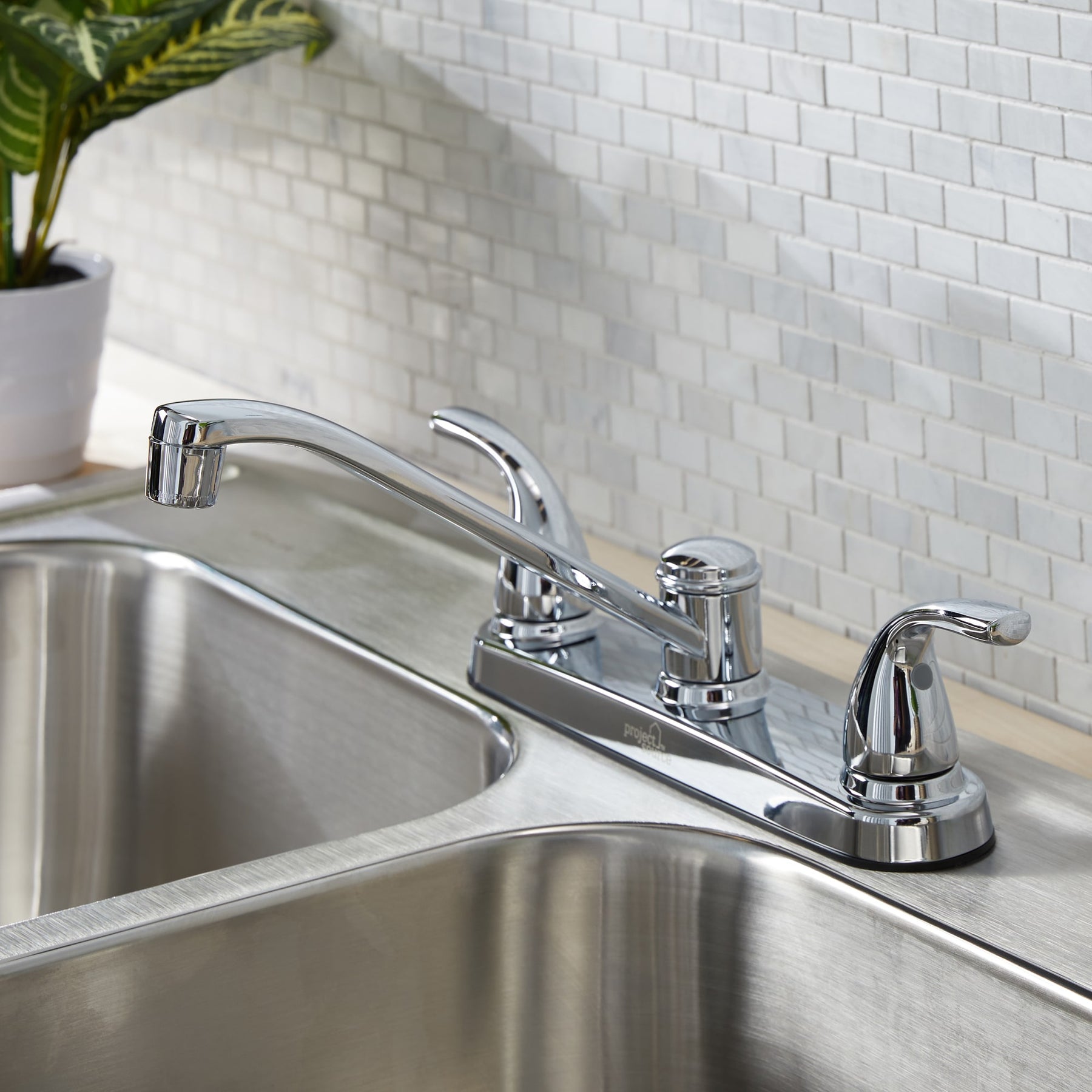 Project Source Dover Chrome 2-Handle Deck-Mount Low-Arc Kitchen Faucet with Deck Plate