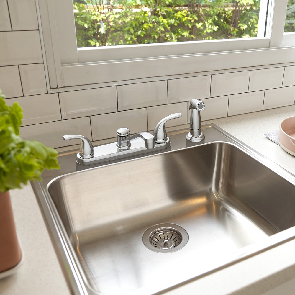 Project Source Dover Chrome 2-Handle Low-Arc Deck-Mount Kitchen Faucet with Side Sprayer and Deck Plate