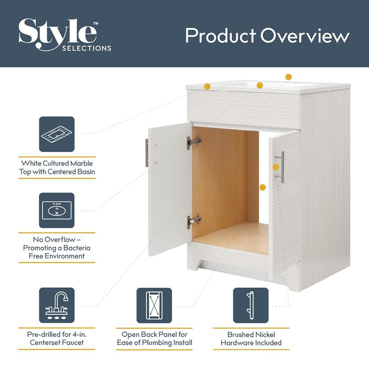 The Style Selections Tierra 24.5-in White Single Sink Bathroom Vanity is designed with both form and function in mind. The white cultured marble top provides a beautiful and durable surface that is resistant to stains and scratches, while the single sink design maximizes counter space. The vanity also features ample storage space with two doors and one adjustable shelf, providing plenty of room for your bathroom essentials.