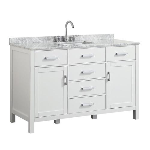 Beaumont Decor Hampton 55-in White Single Sink Bathroom Vanity with White Natural Marble Top