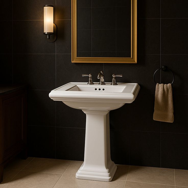 The KOHLER Memoirs Pedestal Sink Basin combines classic design with modern functionality. Made from durable ceramic, it features a rectangular shape, predrilled faucet holes, and an overflow drain for convenience.