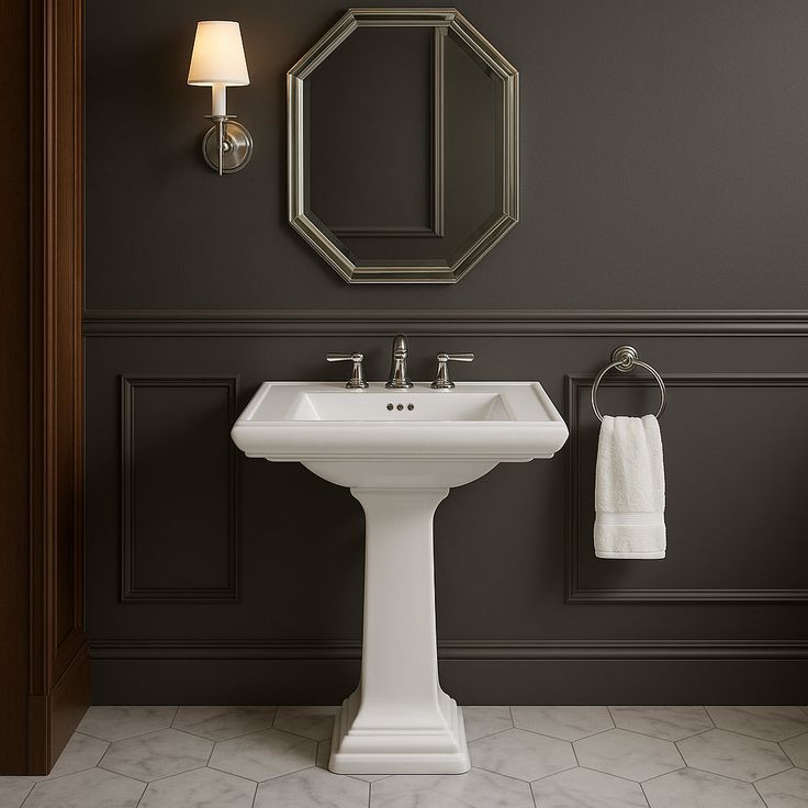 The KOHLER Memoirs Pedestal Sink Basin is a masterpiece of classic design, blending traditional aesthetics with modern functionality. Its refined rectangular shape and crown molding-inspired edges add a touch of sophistication to any bathroom. Pair it with a matching pedestal for a cohesive look, and style it with elegant chrome fixtures to complete the ensemble. This sink is not just a functional piece but a statement of luxury and timeless design.