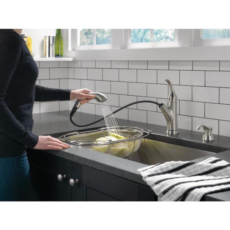 Delta Kessler Stainless 1-Handle Deck-Mount Pull-Out Handle Kitchen Faucet (Deck Plate Included)