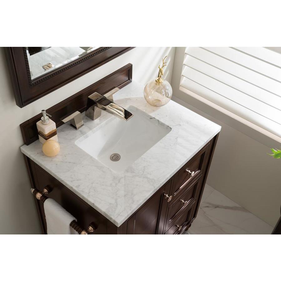 James Martin Vanities Copper Cove Encore 30-in Burnished Mahogany Single Sink Bathroom Vanity with Carrara White Marble Top