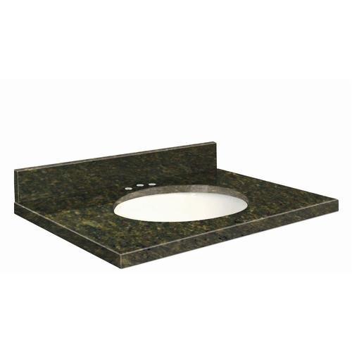 Elevate your bath with this 25-in Transolid vanity top, crafted from 1-1/4-in thick natural Uba Verde granite. It arrives pre-sealed for stain resistance and includes a matching 4-in backsplash and a white oval undermount vitreous-china sink with overflow.