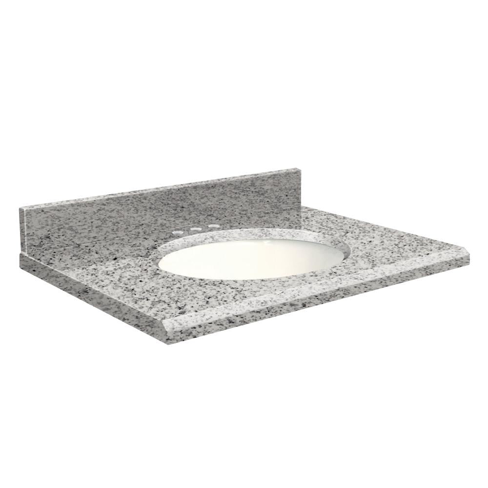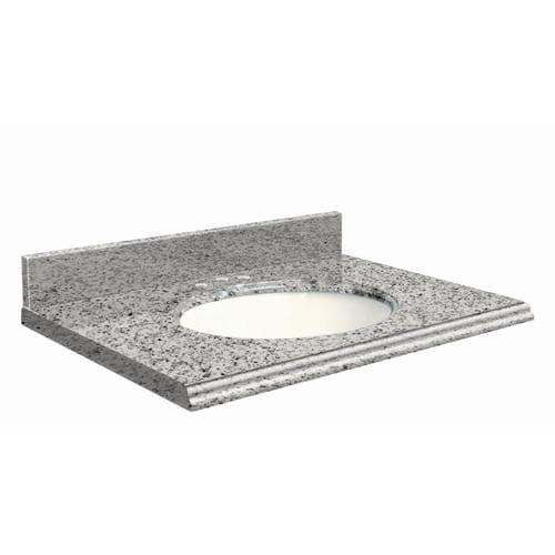 Upgrade your bath with this 31-in Transolid vanity top crafted from 1-1/4-in thick natural granite in Rosselin White. It comes factory pre-sealed for stain resistance and includes a matching 4-in backsplash and a centered undermount oval vitreous-china sink.