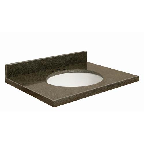 Elevate your bath with a 25-in Transolid vanity top crafted from 1-1/4-in thick natural Sea Green granite. Pre-sealed for stain resistance, it includes a matching 4-in backsplash and a centered white oval vitreous-china undermount sink with overflow.