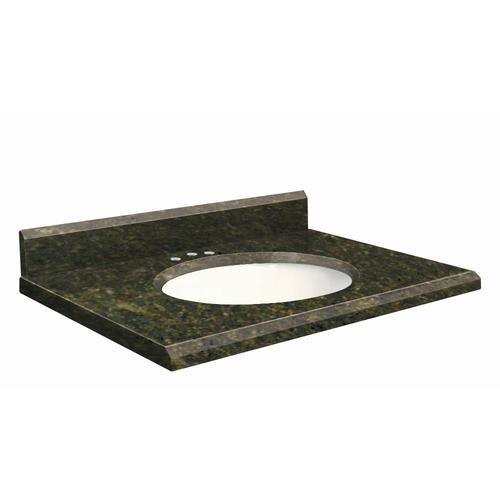 This 43-in bathroom vanity top is crafted from 1-1/4-in thick Uba Verde green natural granite and comes pre-sealed for durability and stain resistance. It includes a 4-in matching backsplash and a center-positioned white vitreous-china undermount oval sink with overflow, fitting a 42-in x 21-in vanity cabinet.