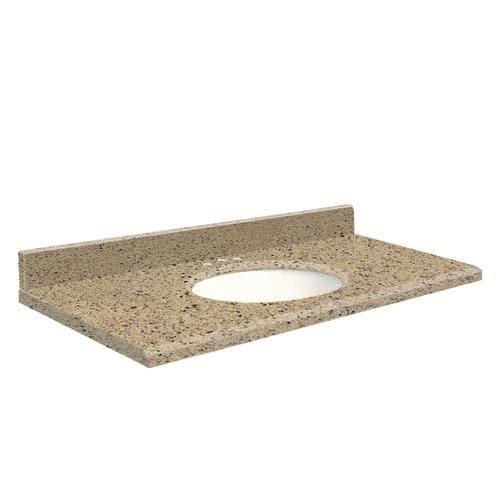 Upgrade your bath with this Transolid quartz vanity top in Windsor Castle, featuring a durable 3/4-in engineered quartz construction and a factory-installed oval undermount sink. Pre-sealed for stain resistance, it includes a matching 4-in backsplash and fits a 30-in W x 21-in D vanity cabinet.