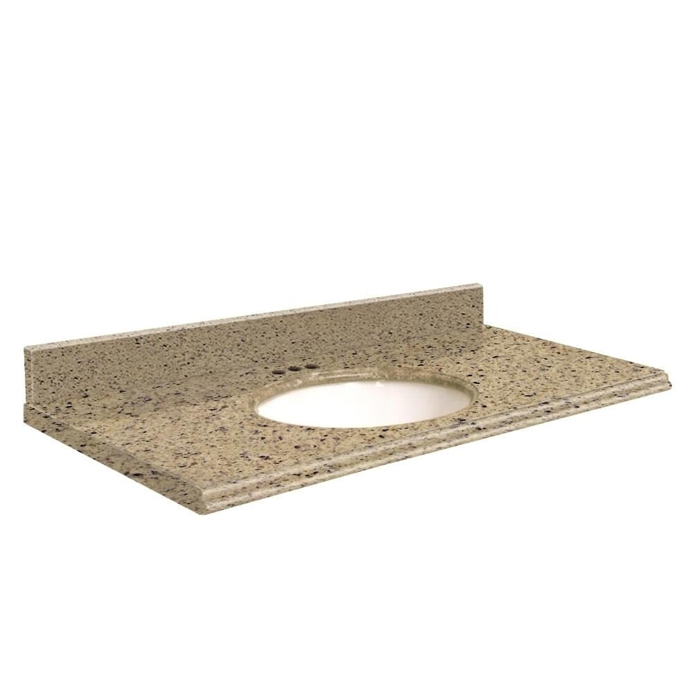 Upgrade your bath with this 25-in engineered quartz vanity top in Windsor Castle, featuring a pre-sealed, stain-resistant finish. It includes a 4-in matching backsplash and a center-set, undermount oval vitreous-china sink for a polished, durable installation.