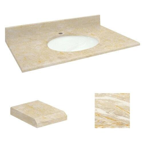 Elevate your bath with Transolid’s Oman Beige natural marble vanity top, pre-sealed for lasting stain resistance. This 37-in x 22.25-in top includes a matching 4-in backsplash and a centered undermount oval vitreous-china sink for a ready-to-install upgrade.