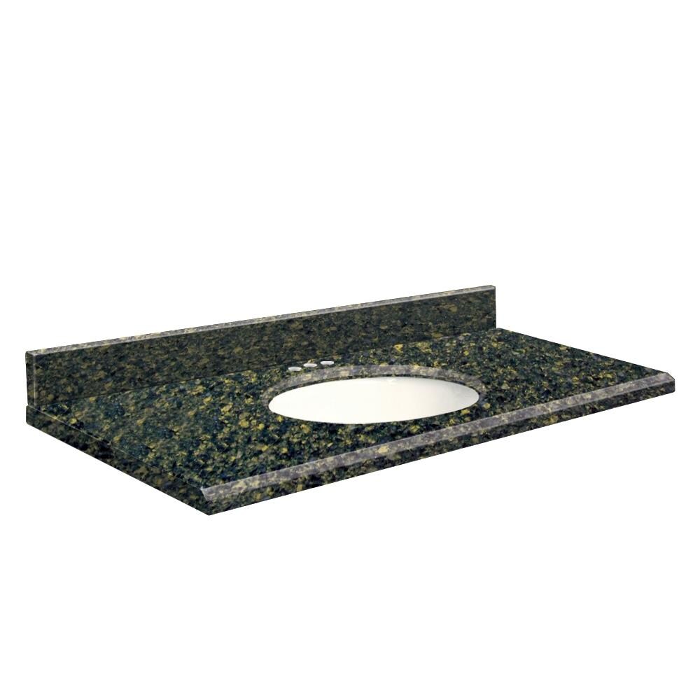 A: A white vitreous-china oval undermount sink with overflow and a 4-in matching backsplash are included.